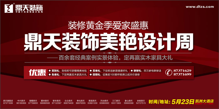五月之美,始于綠意濃稠;五月裝修之美,始于美艷設(shè)計(jì)周,這黃金季的盛惠。在這綠色的時(shí)節(jié),鼎天裝飾設(shè)計(jì)師們已是迸發(fā)出最強(qiáng)烈的設(shè)計(jì)靈感,妝扮生活,為您打造愛家。5月23日,鼎天美艷設(shè)計(jì)周奉獻(xiàn)最豐盛的設(shè)計(jì)盛宴,最吸引人的優(yōu)惠大獎(jiǎng),問候五月,致敬綠色。地點(diǎn):凱洲大酒店四樓嘉洲廳(天一廣場南面)。 設(shè)計(jì):致敬專屬的生活 多年來,對裝修設(shè)計(jì)時(shí)尚元素的不斷整理、分析和提取,鼎天裝飾積累了深厚的設(shè)計(jì)創(chuàng)意功底。針對不同人群,鼎天裝飾設(shè)計(jì)了在商業(yè)快節(jié)奏里突顯溫情的慢調(diào),專為都市白領(lǐng)打造的優(yōu)雅,滿足城市精英的個(gè)性和專屬別墅的華貴舒適等。在千余套不同小區(qū)、不同風(fēng)格的室內(nèi)設(shè)計(jì)臻品案例中,5月23日美艷設(shè)計(jì)周為您一一呈現(xiàn)。 針對高端別墅裝修的業(yè)主,鼎天裝飾通過自身強(qiáng)大的資源整合能力,以及領(lǐng)攜至尊工作室設(shè)計(jì)團(tuán)隊(duì)推行別墅裝飾的整體規(guī)劃設(shè)計(jì)與施工、別墅設(shè)備、主材、家具、配飾的私屬定制一站式服務(wù),在細(xì)節(jié)上做到極致,滿足高端消費(fèi)者在居家裝修上的各種需求。如設(shè)計(jì)階段布局智能家居系統(tǒng),實(shí)現(xiàn)智能安防、新風(fēng)、吸塵、凈水、溫控、娛樂等居家功能等,為您打造一站式健康舒適的專屬生活。 優(yōu)惠:整套實(shí)木餐桌等您贏取 美艷設(shè)計(jì)周,5重好禮樂享不盡:簽到禮、簽單禮、連購禮、免單禮及回饋禮輪翻上演。只要到訪活動,所有業(yè)主都可拿一份精美禮品;下定即送家居健康好禮,并憑鼎天裝飾定單,參與砸金蛋得免單大獎(jiǎng),除了建材、家電、工程抵用款等心動大獎(jiǎng),更有整套美式實(shí)木餐桌等您現(xiàn)場贏取,單單有獎(jiǎng),等您敲定。此外,活動還推出品牌建材聯(lián)盟大特惠,不僅有特價(jià)爆款,還享受連購禮,(根據(jù)連購的建材品類數(shù)量)免費(fèi)收獲電飯煲、洗衣機(jī)等實(shí)用家電大禮。五月裝修強(qiáng)惠來襲,就在這一天了! 到訪業(yè)主還可參與“在裝工地體驗(yàn)行”?;顒娱_通了百套實(shí)景樣板房直通車,讓業(yè)主們現(xiàn)場體驗(yàn)不同風(fēng)格、不同戶型、不同施工階段的裝修在建工地,聆聽設(shè)計(jì)師的設(shè)計(jì)講解,感受真實(shí)空間的設(shè)計(jì)元素布局。如:青林灣、海外灘、新外灘一號、銘豪觀樾、維科上院、鈺鼎園、蘇園、印象外灘、星河國際、舒沁苑、君和院、世貿(mào)首府、銀億東岸、風(fēng)格尚品、盛世華府、金億文園、悅瀾灣、景瑞望府、君瀾上府、榮安心居、鉑翠灣、東海府、藏瓏、締壹城、君園和莊、山清軒、銀億上郡、文瀾水岸、左岸尚苑、金色江山、水榭花都、中海國際社區(qū)、紫玉花園、麗江苑、君雅苑、金色瓏庭、東都華庭、宜家花園、晴園、麗景英郡、保利城、芳辰麗陽、英倫水岸、東湖觀邸、盛世天城、江南一品、雍城世家、上上城等甬城小區(qū)由您選擇。如此細(xì)致,只為保障您的家裝在設(shè)計(jì)、工程上的品質(zhì)。 專業(yè):整體家居方案 大眾之選 “好生活,好設(shè)計(jì)”,鼎天裝飾的裝修設(shè)計(jì)理念同樣致力于為大眾消費(fèi)者打造精品之家,并以整體家居解決方案,滿足大眾裝修省心、省力、省錢的需求。目前,鼎天裝飾成功推出的美艷1號、美艷5號、美艷8號及美艷999等精裝套餐,已在市場上取得了巨大成功,深受都市白領(lǐng)、經(jīng)典婚房及改善型裝修者的青睞。每套方案,鼎天裝飾都結(jié)合了全體設(shè)計(jì)師團(tuán)隊(duì)的設(shè)計(jì)智慧,在裝修風(fēng)格、價(jià)格、適宜人群等全面細(xì)化,并制定教課書般施工方案,由金牌施工團(tuán)隊(duì)全力打造。因?yàn)閷?shí)行有效地資源整合,據(jù)估算,精裝套餐整體家居還比常規(guī)裝修節(jié)省費(fèi)用400-500元/平方米。 五月之美,開啟美艷設(shè)計(jì)周! 特別預(yù)告: 5月23日(周六)9:00---17:00,鼎天裝飾在凱洲大酒店四樓嘉洲廳(天一廣場南面)舉辦“美艷設(shè)計(jì)周”裝修黃金季愛家盛惠活動,現(xiàn)場限量征集前100套鼎天“美艷”樣板房,并以成本價(jià)為其裝修,且由鼎天至尊工作室、金牌施工團(tuán)隊(duì)聯(lián)手打造完美家裝樣板工程?,F(xiàn)場還尊享一站式家裝建材購齊服務(wù),優(yōu)惠史無前例! 樣板房報(bào)名熱線:87371629 貴賓熱線:87371699