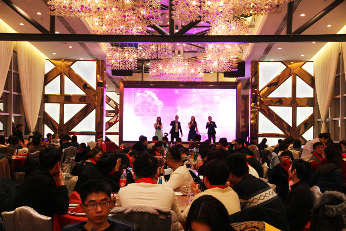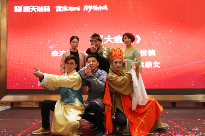 1月28日,鼎天裝飾以 “贏在2016 為夢想而戰(zhàn)”為主題的2015年會暨迎新晚會在寧波文鼎璽悅大酒店隆重舉辦。年會當(dāng)日,場內(nèi)燈火輝煌,每個人的面孔都洋溢著熱情和喜悅。 下午15:58分,鼎天裝飾2015年會在一場流行而華麗的舞蹈《Lion Heart 獅心》中拉開帷幕!全場在激昂奮進(jìn)的音樂和強(qiáng)勁有力的舞蹈中,進(jìn)入了鼎天2015年輝煌的篇章。 各級的領(lǐng)導(dǎo)紛紛上臺表示“2015年之所以能取得如此之好的成績,離不開每個團(tuán)隊的辛勤努力與付出,同時也感謝各位團(tuán)隊的家人對他們工作的支持與理解。相信未來,只要有你們在,鼎天將會走的更遠(yuǎn),更好,更高!同時也真正實現(xiàn)客戶、企業(yè)、員工之間的共贏”。作為甬城本地裝飾企業(yè)的代表,鼎天總經(jīng)理麻宏偉先生也回顧了鼎天近20年來讓他感動的故事,深刻地分析了鼎天現(xiàn)在的發(fā)展模式,并且根據(jù)當(dāng)前市場的需求,規(guī)劃了鼎天新的未來。鼓勵大家堅守“誠實守信,客戶為先”原則,奮勇拼搏,為更多的家庭創(chuàng)造幸福生活! 領(lǐng)導(dǎo)激奮人心的發(fā)言后,掀開了鼎天2015年度優(yōu)秀表彰的高潮,這是對過去一年來辛勤付出的鼎天人最好的嘉獎與認(rèn)可,同時也激發(fā)出其他同事在新一年里的斗志! 杰出的成績,源于拼搏的勇氣。傲人的成就,來自于不懈的努力。我們感謝鼎天的精英們,是他們盡情的施展著自己的智慧,在一個個不眠之夜尋找著藝術(shù)的靈感,用創(chuàng)新的思維以及對工作力求盡善盡美的態(tài)度,創(chuàng)造出一套套經(jīng)典。 最后,鼎天裝飾2015迎新晚會在場內(nèi)所有同仁的一片歡聲笑語中圓滿結(jié)束。2015,我們用智慧和汗水贏得了萬千業(yè)主的信任和支持,感謝每一個人給予鼎天的光榮。2016,讓我們一路同行,飽含激情、努力奮進(jìn),再創(chuàng)新輝煌!