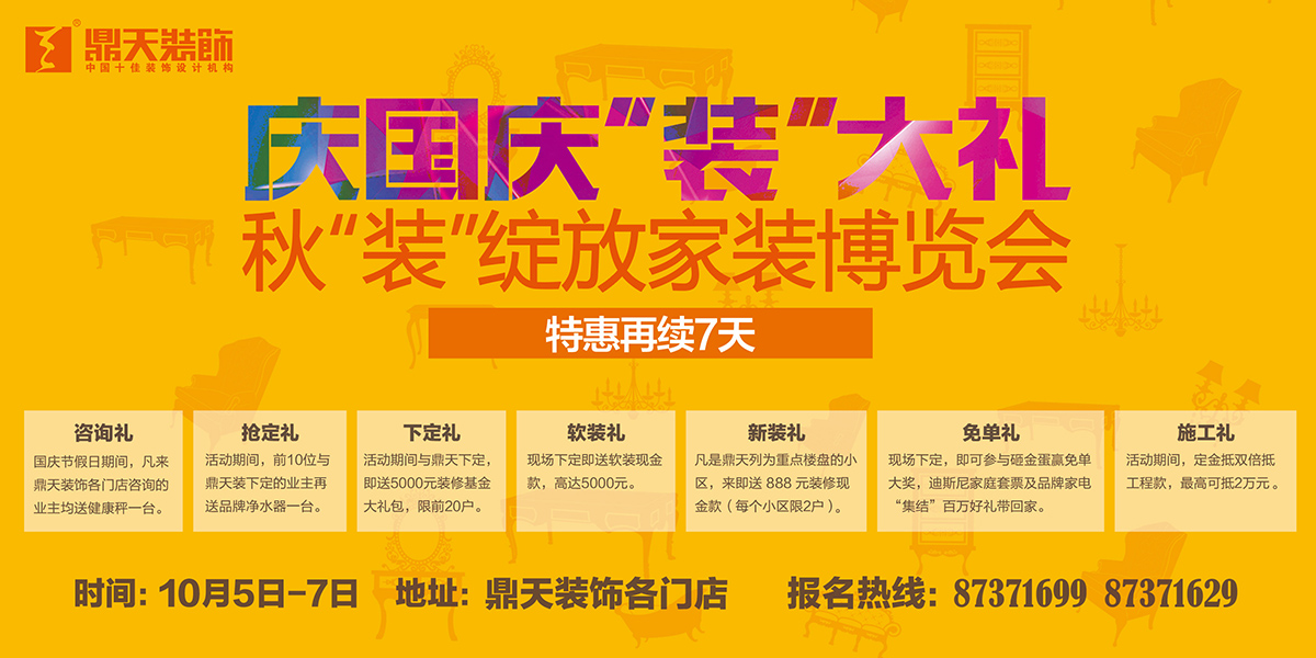 | 《慶國慶 “裝”大禮》 秋“裝”綻放家裝博覽會(huì)特惠再續(xù)7天 |