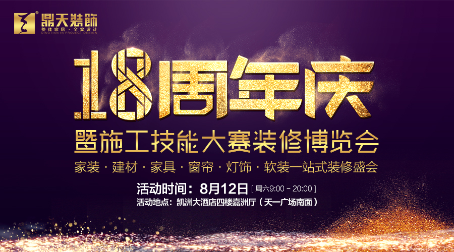特別預(yù)告: 8月12日(周六)9:00-21:00,鼎天裝飾在凱洲大酒店四樓嘉洲廳(天一廣場(chǎng)南面)舉辦“施工技能大賽裝修博覽會(huì)暨18周年慶”活動(dòng),現(xiàn)場(chǎng)限量征集500套“18周年典藏”樣板房,悅享百萬裝修特惠,并由鼎天至尊工作室、金牌施工團(tuán)隊(duì)聯(lián)手打造完美家裝樣板工程?,F(xiàn)場(chǎng)還尊享一站式家裝建材購(gòu)齊服務(wù)。種種福利,燃爆行動(dòng)!