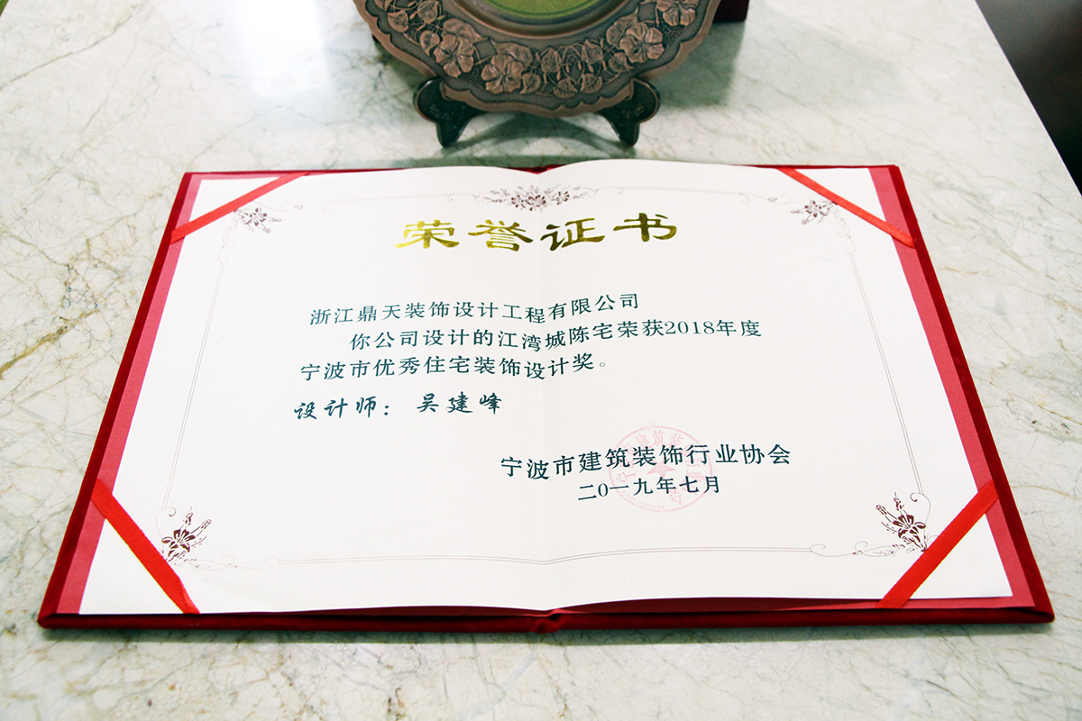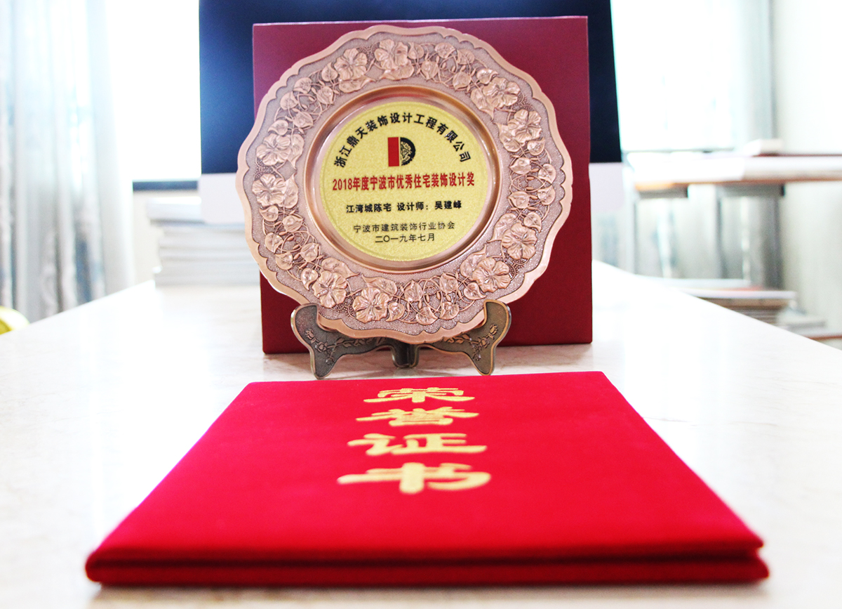 ▲優(yōu)秀住宅裝飾設(shè)計(jì)獎(jiǎng)牌 自鼎天1999年成立以來(lái),已連年獲得寧波市消費(fèi)者信得過單位、年度影響力家裝品牌、誠(chéng)信建筑裝飾企業(yè)、全裝修推薦家裝企業(yè)等共計(jì)百余項(xiàng)獎(jiǎng)項(xiàng)。