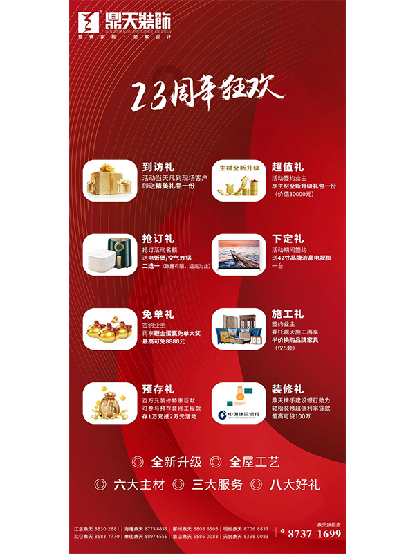 對(duì)于寧波“有房族”和即將購(gòu)房的“準(zhǔn)房族”來(lái)說(shuō),最近可謂好消息不斷。樓市沉寂半年之后,終于在新年到來(lái)之前,回暖了!在去年12月成交量大幅上升之后。1月18日的寧波土拍中,開(kāi)發(fā)商熱情高漲,市區(qū)5塊土地拍到封頂價(jià)。兩天后的1月20日,央行公布降準(zhǔn),寧波多家銀行緊隨其后降息,我們算了一下,降息之后,300萬(wàn)的房貸預(yù)計(jì)可以少還利息3萬(wàn)元左右!買(mǎi)房壓力減小,下一步就是裝修了,還是那句話(huà):專(zhuān)業(yè)的事交給專(zhuān)業(yè)的人去做。大浪淘沙,市場(chǎng)的反饋已經(jīng)告訴我們答案——鼎天裝飾。我們公司創(chuàng)建于1999年,是一家集工裝、家裝、設(shè)計(jì)、施工、監(jiān)理于一體的專(zhuān)業(yè)裝修公司。正在裝修的小區(qū)有:雅戈?duì)柦?、江灣城、江山萬(wàn)里、海晏府、姚江灣、湖棠、白石湖東、璀璨云堤、堇天府、玉棠雅苑、中旅城、龍湖天境、御官山、未來(lái)道、上寧府、中交雅郡等等…… 說(shuō)得好不如實(shí)景展現(xiàn)~往下看:
