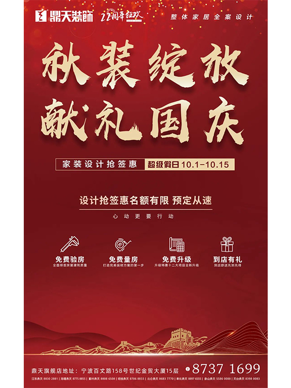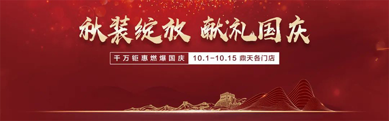 ?? 10月1日—10月15日鼎天超級假日《秋裝綻放·獻禮國慶》活動熱烈,開啟千萬鉅惠●各種好禮等您來領(lǐng)詳情請咨詢以下各門店
