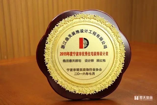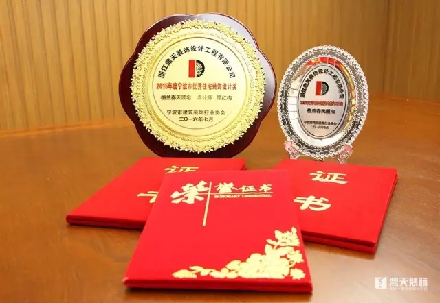 經(jīng)寧波市建筑裝飾行業(yè)協(xié)會公開、公平、公正的原則,鼎天裝飾再獲殊榮,評得“2015年度寧波市優(yōu)秀住宅裝飾設(shè)計(jì)獎”、“2015年度寧波市優(yōu)秀住宅裝飾工程獎”、“2015年度寧波市建筑裝飾裝修施工企業(yè)優(yōu)秀項(xiàng)目經(jīng)理”等榮譽(yù)獎牌及榮譽(yù)證書。