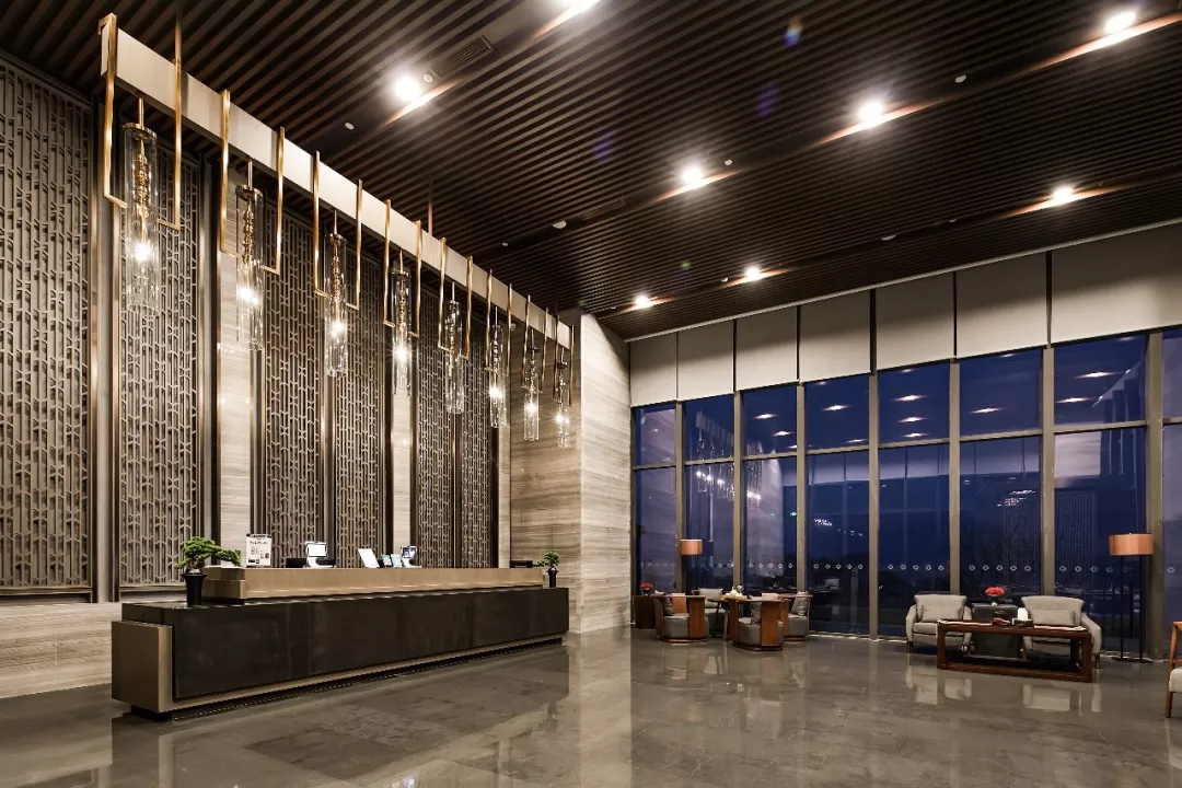 ▲東錢湖萬金雷迪森度假酒店外立面一角 寧波東錢湖萬金雷迪森度假酒店位于寧波東錢湖廟弄村地塊,背倚青山,煙波浩渺,坐擁一線湖景,直面東錢湖小普陀景區(qū)。 ▲東錢湖萬金雷迪森度假酒店接待大廳