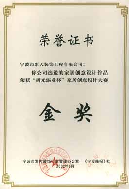 2002年06月 榮獲"新光杯"家居創(chuàng)意設計大賽金獎
