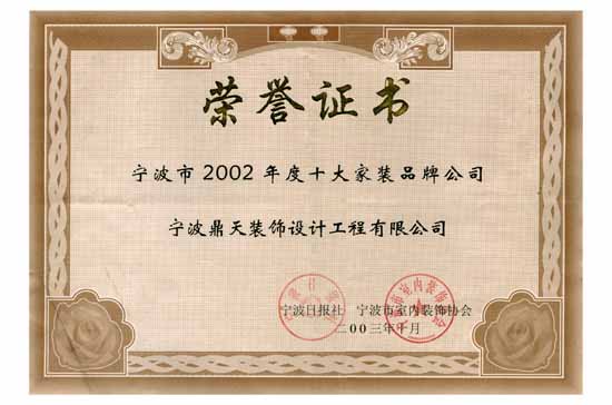 2003年10月 榮獲寧波市2002年度十大家裝品牌公司