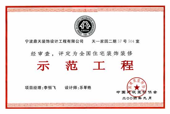 2004年09月 評為全國住宅裝飾裝修示范工程