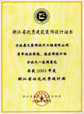 2005年09月 榮獲浙江省住宅優(yōu)秀設(shè)計獎