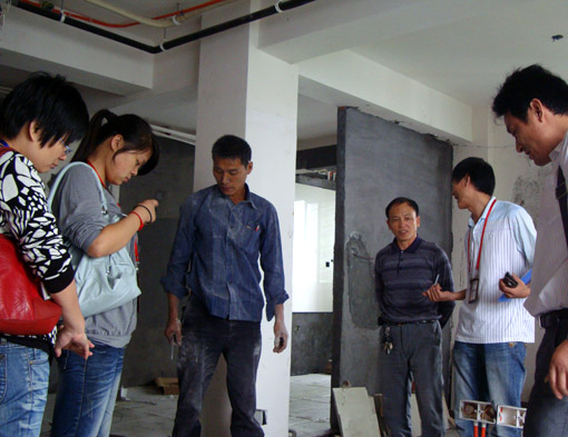 鼎天裝飾施工技能大賽房活動已全面展開,八月底推出這個活動時,征集的30套“比武大賽”樣板房很快就預定一空,目前已經(jīng)有十幾家開工進場了。9月27日,鼎天各部門主管一行專門來到上上城、風格城事、南都花城等工地,針對本次施工技能大賽房進行了工地巡檢。其中,選擇“美艷1號” 999元/㎡精裝套餐的業(yè)主工地也在重點巡檢的行列中。工地形象、施工工藝、業(yè)主反饋等信息,都將成為鼎天選評“2010金牌項目經(jīng)理、金牌施工班組”的重要打分依據(jù)。