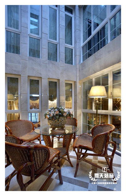 挑高的中庭一氣貫通,不但讓空間顯得氣度恢弘,更讓居住者與自然環(huán)境緊密相融,午后一束光下,在此處悠然品茗,何等自在!沿扶梯宛轉而上,中庭景致與室內陳設遙相呼應,熠熠生輝,居室也變得通透敞亮,人的心情相比將更為舒暢。臥室與客廳的設計古典中透出現(xiàn)代,沉靜而不乏靈動,在展現(xiàn)居室品質的同時也讓人得到完全的放松與休息。 項目名稱:清泉花園別墅 建筑面積:360平米 主要建材:復古砂巖磚、藝術墻紙、茶色玻璃、軟包、銀箔漆、櫻桃木套色 設計/施工:寧波鼎天裝飾設計工程有限公司 設 計 師:鼎天“至尊”工作室——領秀組